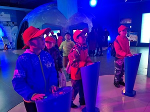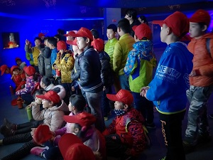 活动前期,青协志愿者联系基地负责人确定活动开展的时间、内容和形式,为活动做积极准备。活动伊始,孩子们在讲解员的带领下,依次观看了巨形地球模型、“克雷EL98”计算机、“击掌涌泉池”等,志愿者们也认真学习。通过讲解,孩子们了解了地球气候的演变史、全球荒漠化的过程、天气预报的由来等,孩子们表现了极高的兴趣。接下来的互动环节更受孩子们的青睐。骑单车测风速、气象知识问答等都让孩子们在游戏中学到了许多气象知识。然后,孩子们还学习到了一个殷商时期甲骨文中的“霾”字,他们表示以后要爱护环境,多多种树,战胜雾霾。最后,孩子们互相分享此次活动的经验与感受,活动圆满结束。