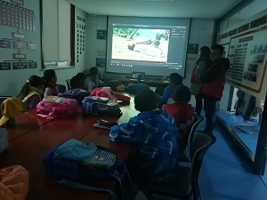 本次活动采取分组互动的形式,以青协志愿者的英语自我介绍为切入口,将孩子们带入英语的世界中。活动伊始,青协志愿者鼓励学生用英语介绍自己的兴趣爱好,稚嫩的声音显示出孩子们对于学习英语的渴望。随后的二十分钟里,志愿者通过PPT演示,以图文兼备的形式为学生讲解关于日常生活的单词,趣味配图帮助学生更加直观的认识各个英语单词的意义。接着,志愿者组织学生观看相关动画片,通过动画片里的对话来巩固学过的单词,加深学生的印象。课程结束前,志愿者们与学生一起欣赏了英文歌曲,并让有兴趣的学生进行学唱。最后,青协志愿者与基地学生合影留念,至此,本次英语教学活动在一片欢声笑语中圆满结束。