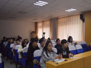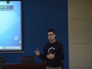 此期“学霸讲堂”活动以“英语大佬”为主题。活动前,由自律会干事进行学霸选拔比赛,经过口语与听力的考察确定本期主讲师。本期“学霸讲堂”主讲师为会计1501班俞士炜,讲师俞士炜由自身与外国友人交往的经历引出此次活动的内容。讲师主要讲解了如何进行听力的训练及口语的练习,提到听力应从简单到困难逐步递增来训练,而口语的练习应是生活化的,利用自己周围的生活环境来进行训练。除此之外,有的同学提到该如何提高单词的记忆,针对这个问题,讲师讲到:单词的记忆应该是循环的,今天学习的单词可以利用翻译与写作加深记忆。活动期间同学们认真听讲并且记录,同时与讲师一同讨论问题。最后,此期“学霸讲堂”在同学们的掌声中结束。