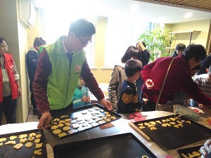 此次活动以手工烘焙的形式开展,为给居民提供更好的服务。活动开始前,志愿者先了解并学习烘焙的基本方法,后到社区进行烘焙培训。活动当日,志愿者到达活动地点之后签到、穿志愿者服装并帮助摆放活动物品。随后,“花young·烘焙坊”活动正式开始。活动伊始,参与家庭在志愿者的帮助下进行热身。接着,全体人员在烘焙师傅的带领下制作饼干和创意推推乐蛋糕。青少年在家长和志愿者的指导下制作出各式各样的饼干、糕点。活动将要结束时,参与此次活动的青少年表示:“当看到自己完成的作品时,油然而生一种满满的成就感。”最后,此次活动在志愿者、参与家庭及他们各自的作品的合影留念中圆满结束。