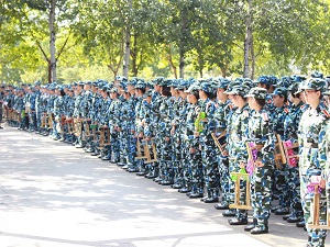 为帮助大一新生磨练意志、锤炼品格,使其顺利融入大学生活。9月12号,篮球场上77779193永利官网全体大一新生身着迷彩服,拉开了他们为期两周的军训大幕。