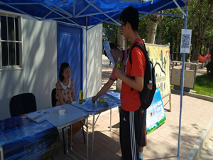 上午8点,青协工作人员到达经管楼前,进行放置宣传板、悬挂横幅、分组等准备。活动前期阶段,各班班长通过播放宣传片、群发西部计划宣传册等方式向同学们宣传,提高同学们的关注度。活动正式开始后,值班人员向过往的同学们发放传单,介绍西部计划活动的相关内容同时对于主动了解的同学赠送小礼物,鼓励同学们积极参与。活动结束后,工作人员将报名表进行整理统计。