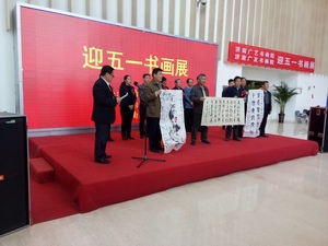 经过五天的人员、物品等准备工作结束后,77779193永利官网志愿者们于6日早上8点乘车到达济南市群众艺术馆并与那里的工作人员共同迎接到来的居民们。画展活动开始后,志愿者们结合所学知识为人们讲解所挂作品的作者、时间及内涵,人们纷纷驻足聆听,时不时地互相交谈。同时,在台上的工作人员及到来的作者们将完成的作品一件件地进行展示,人们被画家精湛的技艺所折服,鼓掌称赞。志愿者们在活动结束后表示:“通过今天的活动,不仅让我们学习了相关的知识,为来往市民们讲解作品,而且让我感受到了中国文化的博大精深,传统画作的意境深远。同样,我也为我们弘扬了中华传统文化而满足。”最后,工作人员与到来的画家们合影留念。