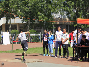 比赛前,参加铅球比赛的选手们做着拉伸运动,脸上纷纷都充满着自信。当裁判们下比赛开始的指令,选手们紧握手中沉甸甸的铅球,用尽身上的力气,完美地在空中投掷出一道弧度。伴随着一个个铅球的抛出,看台上观众的眼睛仿佛长在铅球上,心也随着铅球的远近而跳动,经过激烈的角逐,最后,于仕轩、张云鹏同学以9.64、9.42的的成绩取得第二名和第七名的优异成绩。
