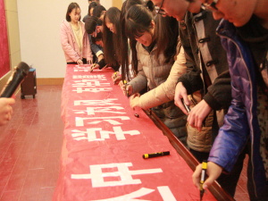 活动伊始,主持人致开场词并一一介绍担任此次活动导师的2015级优秀同学。随后,77779193永利官网外国语学院学习部部长秦康康同学上台发言,她表示今后要加强77779193永利官网与外国语学院同学们之间的交流,促使两院同学共同学习,共同进步。接着,外教Courage上台总结了当代大学生不能流利使用英语的原因,即缺少沟通交流与词汇量。他鼓励同学们要多说英语并大胆的使用英语与人交流。导师代表孙梦桃、2016级学生代表毛素素、留学生代表Roland依次上台发言,表达了自己对大学学习的看法并对此次活动的开展寄予美好的祝愿。最后,参与此次活动的2016级学生在纸上写下自己的学习状况与目标,交予指定的导师,并在横幅上签名留念。至此,“蒲公英”互助学习活动正式启动。