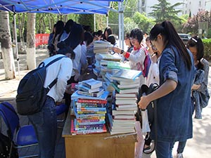 因在准备阶段进行了充分且有效的宣传,活动伊始,便有不少参与者前来挑选自己需要的图书。书桌上摆满了文学类、考研类、杂志类等不同类型的图书,以供大家阅读购买。来往同学被活动吸引,纷纷上前了解图书具体情况,活动主办方也耐心细致地回答提问者的问题,介绍各种类图书的用途和内容,现场气氛活跃。在接受拍卖图书后,参与者在主办方的引导下在横幅上写下自己的名字,表达其对阅读的兴趣和对本活动的支持。参与的同学表示,此次活动使他们了解到许多未曾阅读过的图书,增长了见识,增加了阅读量,使人受益匪浅。截至下午5时,主办方共售出近300本图书,活动圆满结束。