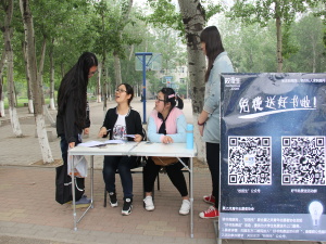 此次活动,实行线上线下相结合的宣传方式,尤为新颖。上午八点,志愿者们早早来到第六食堂对面架起展板进行宣传,同时,借助QQ、微信、微博等同步宣传,募集想要参加活动的人员,让他们报名填写想要读的书籍及想读的理由。报名结束后,主办方会在微信群公布参赛人员名单,后期发起投票,投票数为前二十名的同学可以获得自己想要的书籍。期间,同学们纷纷被展板和丰厚的奖品吸引,前来询问活动内容,并积极报名。志愿者们耐心地向同学们介绍活动内容,并号召大家多读书,多阅读,读好书。下午四点,活动圆满结束。