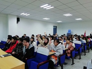 经过充分的准备,宣讲会正式开始。宣讲人董怀坤为志愿者们普及无偿献血知识,并帮忙解疑答惑。其中宣讲内容主要有献血的注意事项、献血的种类以及献血的详细流程,并强调:“无偿献血是为拯救他人生命,志愿将自身的血液无私奉献给社会的公益事业。在自身条件允许的情况下,只要献出一点爱心,世界也将会变的万般美好。”精彩的宣讲引起观众的阵阵掌声,同时,志愿者们积极提出问题,台上台下互动频繁,气氛活跃热烈。宣讲会上,志愿者们认真学习了无偿献血的相关知识,可谓收获满满。宣讲会最后还有有奖竞答环节,志愿者们争相答题,使宣讲会以欢乐问答结尾。