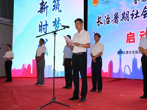 启动仪式上,中国科学院大学、东南大学两位同学代表实践团队师生共计400余人发言,表示作为一名新时代大学生,应当身体力行、自觉投入到社会实践中,不怕苦,不怕累,不怕脏,更好服务长治脱贫攻坚,乡村振兴之中。共青团山西省委副书记周鹏发表热情洋溢的讲话,他强调要牢记习近平总书记在纪念五四运动100周年大会上对新时代中国青年的六点要求,号召本次参加长治社会实践的团队要深入贫困乡村,真入乡、真实践;要用小切口、大思路助力长治专项扶贫,乡村振兴发展,产业转型升级;要以本次社会实践为基础,与人民建立长期的联系。长治市市委副书记在讲话中感谢此次实践活动中来自全国400余名大学生对长治的智力支持,并介绍了长治的悠久历史与发展现状,期望大家在长治有所收获、有所成长。