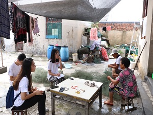 通过我们对当地的村民的了解,发现全村的留守老人有很多,大约有三分之二的老人是留守老人。他们的子女大多数都在外谋生,或打工,或者在运输船上工作,一年只能回家两三次,每次能陪在家人身边的时间也是寥寥无几。交谈过程中我们发现,老人们说着支持孩子外出打工但其实他们的无奈和不舍也轻易地浮现在脸上,爱湖村东西傍水没有田地,靠着京杭运河天然的交通优势使得村民们只能上船养家糊口,但老人们没有了劳动力只能待在家里照看孩子,子女们自然就得出去打工讨生活,倘若在家就能自给自足,谁会背井离乡去承受莫大的生活压力。