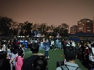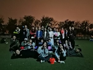 11月1日晚,活动参与人员齐聚操场,活动开场的第一个项目是“两人三足”,搭档们并肩作战,感受到了团结的力量,也不断提升彼此的默契。活动之后,一位社团成员这样说道:“这次团建活动不仅丰富了同学们的课外生活,而且让我深刻地感受到了团结合作能力以及默契的重要性。这也是我第一次在众人面前走上舞台,于我而言,意义深刻。”活动进行到高潮,几位成员开始表演排练已久的舞蹈《极乐净土》,将活动引至白热化阶段,稍后的“抢凳子”环节再次让现场同学兴奋起来。活动接近尾声,意犹未尽的同学们自由分成若干组,围成大圈席地而坐,讨论本次活动的收获,同时放下一天的疲惫,开展“击鼓传花”“狼人杀”“真心话大冒险”等游戏,欢呼声时时响起。
