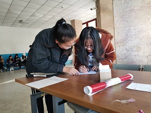 下午两点,活动如期开展,志愿者将相关工作安排地井然有序,确保活动有条不紊地进行。活动一经开始便得到了同学们的踊跃呼应,征集到了种类丰富、创意奇特的作品。纸张虽小,却书写出各位参与者对勤俭的见解;画布虽窄,却承载着各位参与者献身节俭公益事业的决心。一件件精美的作品有书法的笔走龙蛇,有书画的丹青彩绘,更有诗歌平仄的韵脚,将同学们对“勤颂于口,俭付于行”的认识一一道来。活动现场,志愿者耐心向同学们普及相关知识,讲述勤俭故事。下午六点,作品征集工作圆满结束。随后,工作人员将秉承公平公正的原则根据作品的精美度、创意性、主题贴合性评选出优秀作品并展示。