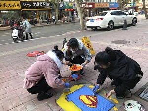 8点整,在社区工作人员的安排下,志愿者分组负责社区入户调查问卷工作、社区周边井盖美化工作以及社区周边垃圾清理工作。活动进行时,社区入户调查小组志愿者在社区居民的理解和配合下高效率地完成了工作;美化井盖组志愿者讨论绘画图案——哆啦A梦、小黄人、闹钟、愤怒的小鸟……仿佛一刹那回到童年时光,志愿者们用手中的画笔描绘出对这美好世界的爱恋与对童年时光的回忆。在志愿者们的努力下,一个一个平淡无奇的井盖变得多彩缤纷、社区风景也变得不一样;清理垃圾小组志愿者充分利用垃圾分类知识,更新了社区面貌。在各小组志愿者工作完成后,他们收获了来自社区居民的感谢。伴随着志愿者们的微笑、礼貌问候、耐心解释以及社区居民的理解,美化社区活动圆满完成。