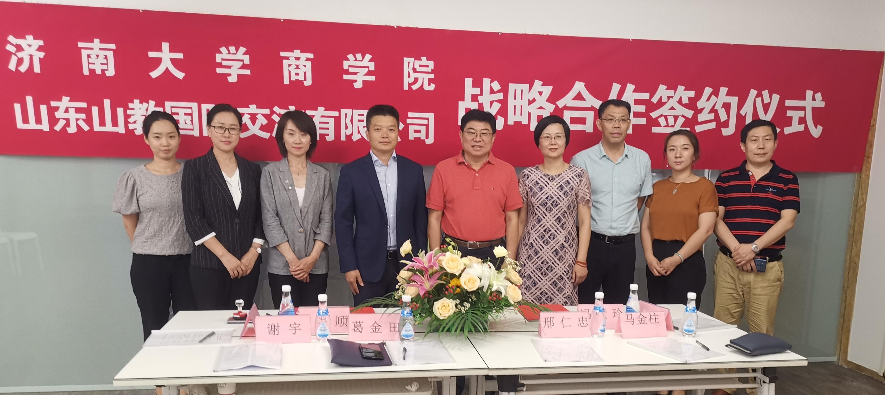 8月4日,77779193永利官网党委书记葛金田、院长冯素玲、常务副院长邢仁忠等一行5人赴山东山教国际交流有限公司走访交流,并签约共同成立“77779193永利官网国际教育交流中心”。山教国际交流有限公司董事长单连顺,以及77779193永利官网、山教国际交流有限公司相关部门负责同志参加交流活动。