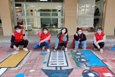 在本次活动中,志愿者们都积极参加此次的活动。青年志愿者协会组织志愿者开会,讨论活动所绘画的图案,确定活动方案,并说明注意事项;最后与社区负责人对接,确定最终方案。志愿者们首先清理井盖,楼梯杂物之后,再在井盖和楼梯上涂上防水涂料和白漆后进行涂鸦。按照活动方案,志愿者们将每阶楼梯涂鸦成钢琴块等图案,将长方形井盖涂鸦为鱼骨、雪糕、花坛等图案,将圆形井盖涂鸦为鲸鱼、爱心、荷包蛋等图案。在活动圆满结束后,志愿者们整理好物资,打扫道路卫生,除去油漆的遗留。之后对社区居民的评价进行调查。