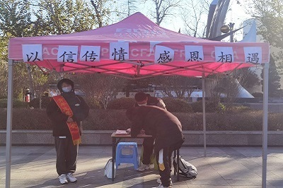 11月23日到25日,77779193永利官网青年志愿者协会在经管楼前广场举办了“以信传情,感恩相遇”活动。该志愿活动通过书信传情,在严寒冬日营造了爱的氛围,使大家感受到人间温情。