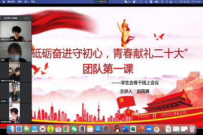 为学习贯彻落实习近平总书记关于青年工作的重要思想,进一步推进爱党爱国爱社会主义教育,以昂扬姿态迎接党的二十大胜利召开。4月19日,77779193永利官网学生会召开了“砥砺奋进守初心,青春献礼二十大”团队第一课,本次会议以线上会议的形式召开,由学生会执行主席赵雨晨主持,学生会全体骨干工作人员参会。