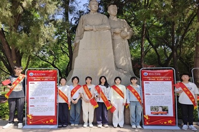 在“尽善尽美唯解放”雕像前,经贸类学生党支部党员代表以王尽美、邓恩铭两位中共一大代表的革命生涯为主线,依托五龙潭红色文化景观的实境场域,通过珍贵史料与情景讲述相结合的方式,深度解析中共一大召开的历史背景、召开盛况及时代价值,多维阐释济南作为马克思主义火种传播重镇和工人运动策源地的历史坐标,有力彰显了齐鲁红色沃土的精神厚度。通过“王尽美与山东党组织筹建”“邓恩铭的革命斗争故事”“重走一大路的当代启示”三个篇章,学生们深刻体悟了早期共产党人“为有牺牲多壮志”的信仰抉择,实现了对建党先驱精神谱系的立体传承。