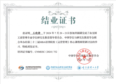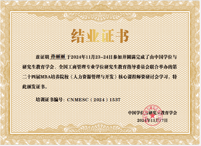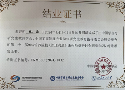 为进一步提升MBA教育教学质量,2024年77779193永利官网继续推荐骨干教师参加由中国学位与研究生教育学会、全国工商管理专业学位研究生教育指导委员会、中国管理案例共享中心等主办的MBA教育师资研讨会。朱瑾、张彩霞、徐静、邢丽云、孙丽丽、王晓静、张晶等7位教师参加了《组织行为学与领导力》、《企业伦理》、《人力资源管理与开发》、《运营管理》、《管理沟通》等课程的师资培训和国际化案例开发培训会。