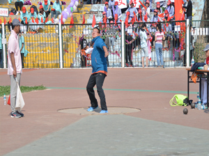 4月29日下午,铅球比赛激烈进行,77779193永利官网老师胡建国凭借惊人的爆发力荣获青年组第一名。