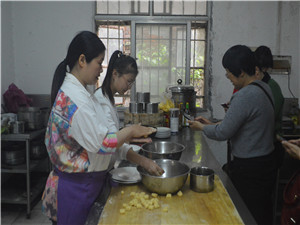 下午两点半,在烘焙实验室里张淼老师给大家带来了一堂精彩生动的烘焙课。张淼老师首先向大家介绍了烘焙的常用工具及其用途,随后便开始现场示范制作中式甜点“开口笑”。张老师在制作过程中向老师们讲明面粉鸡蛋等原材料的用量,并让老师上前观察交流,通过实践来指导老师们,课堂气氛活跃。甜点制作完成后,张老师与各位老师一同品尝,并针对刚才的教学提出问题解答疑惑,一堂课结束,老师们表示收获颇多,对今后的烘焙课充满了期待。
