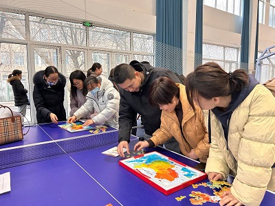本次活动由三部分组成。第一项为生活常识趣味活动健康知识问答,最后四名教师以满分获得第一名;第二项为团队拼图竞速赛,各系、行政和学工分别组队参加,经过激烈的竞争经贸系小组和行政小组分别获得世界地图和中国地图拼图第一名;第三项为气排球团体赛,经过激烈的竞争,最后金融系小组获得第一名。活动现场的氛围和谐融洽,充分展示了永利官网女教职工朝气蓬勃、团结奋进、昂扬向上的精神风貌。通过参加此次趣味运动会,大家一致认为今后要以更加健康的体魄、更加饱满的热情投入到今后的教学工作中去。